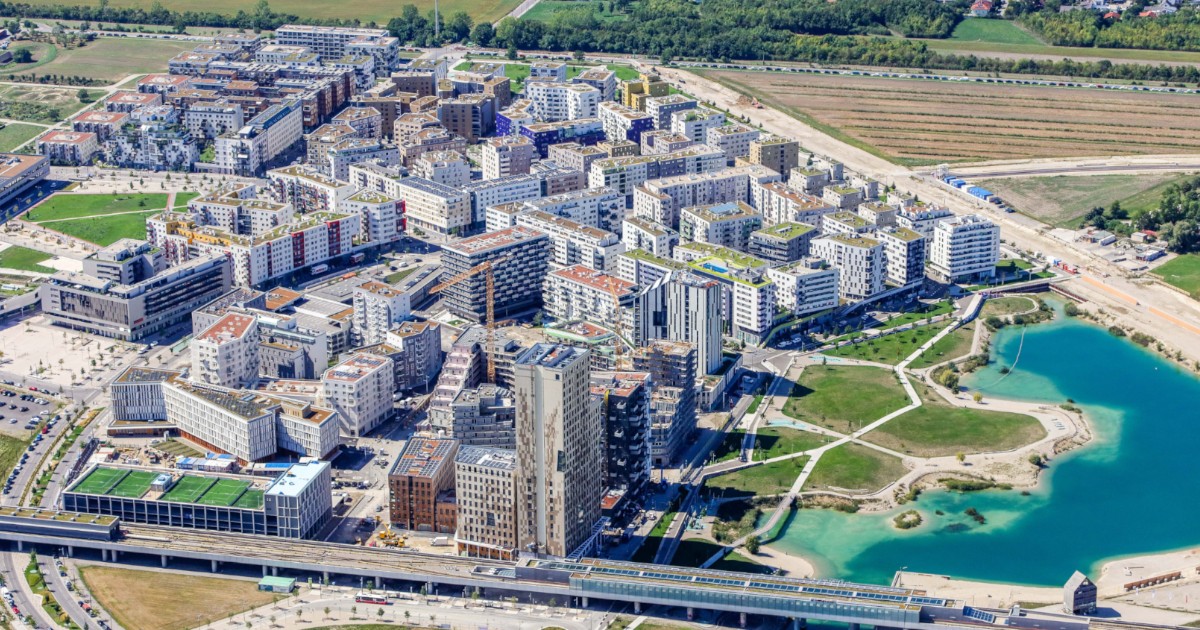 The name “Seestadt” (“lake city”) refers to the artificial lake at the center of the development, designed as both a recreational anchor and urban design focal point. The masterplan revolves around the lake, a five-hectare central park, interconnected public spaces, and a 15-minute-city planning model.